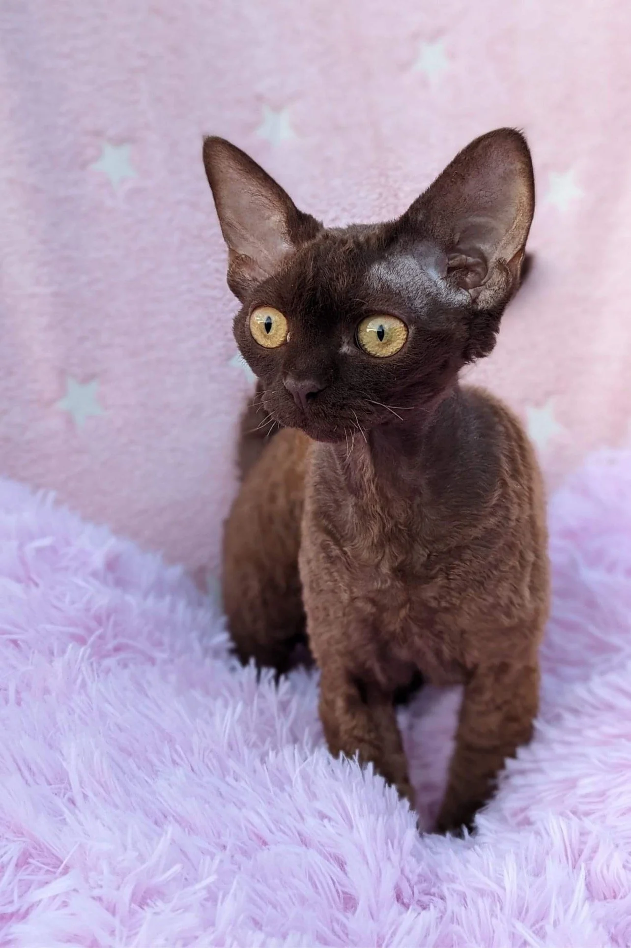 So you have decided that maybe a Devon rex is the breed that you would like to join your family. If you are replacing a previous pet please keep in mind that all cats have different personalities and respond to their owners in different ways. Devons are remarkably different from any other breed. The moment they arrive you will experiance this. So if you had a Persian, a British, a Bengal you will be amazed how different they are. Devons love to be around humans, if not on humans. The breeds that most resemble a Devons personality are Burmese or Sphynx.